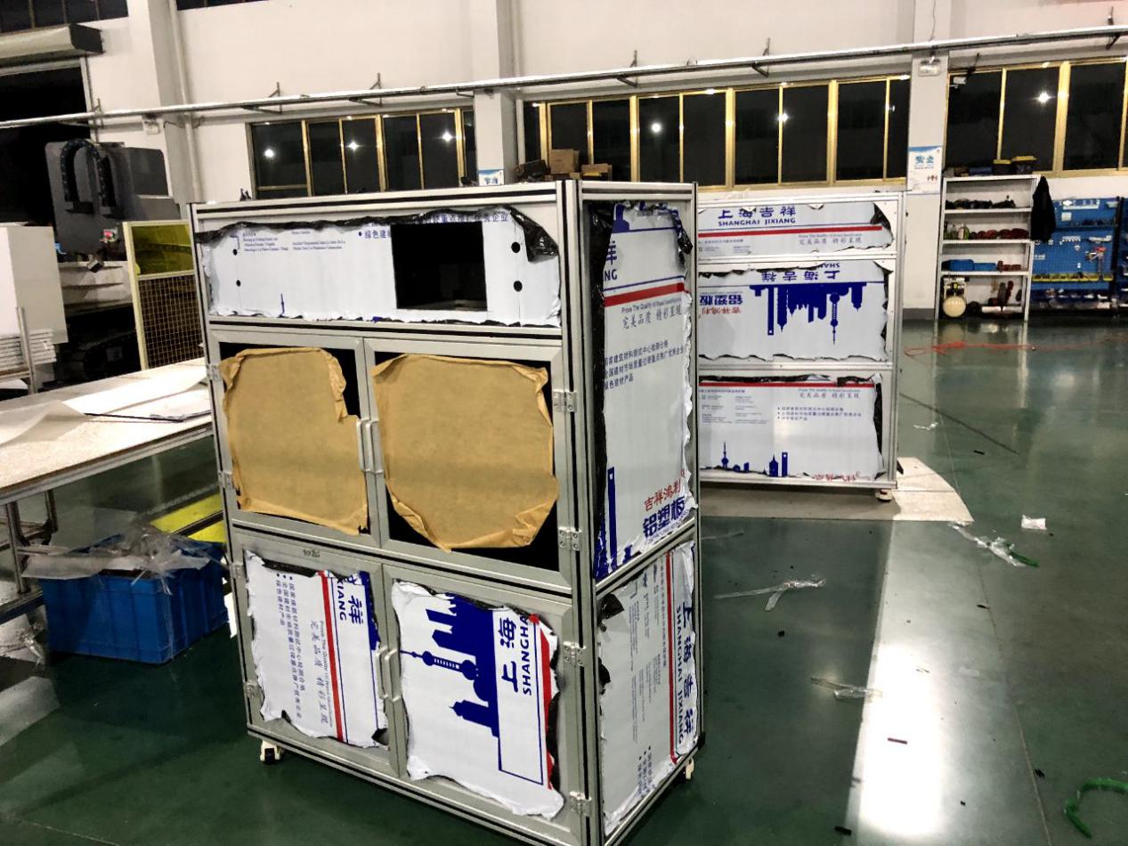 了解到王總我當時就問一下王總的機架的具體承重及尺寸,并且我們互相建立了微信技術小群1 對1技術參與直接溝通方案設計。約在2天經過技術的1對1的技術服務,我們雙方把方案敲定了。因為時間的關系,我們第一次試制了5臺。自動化設備用鋁型材框架+鈑金做門。并與7月30號順利交期。王總他們收到貨后經過性能測試,鋁型材框架在承載力和重量及生產效量能都遠遠大于原來鈑金焊接機架。王總為此非常開心。